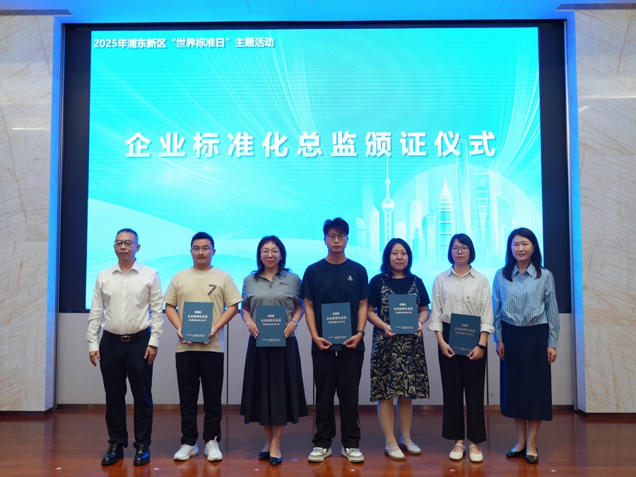 标准化的持续发展,离不开深厚的技术基础与高水平人才供给。近年来,浦东新区持续深化和完善标准化人才体系建设,已在人工智能、生物医药、集成电路等重点领域累计培养200余名企业标准化总监,为产业转型升级与核心竞争力提升提供了有力人才支撑。活动期间,浦东市场监管局与金桥镇政府共同为企业标准化总监代表颁发证书。