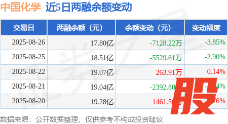 本站消息,8月26日,中国化学(601117)融资买入7401.53万元,融资偿还1.46亿元,融资净卖出7158.19万元,融资余额17.8亿元,近20个交易日中有11个交易日出现融资净买入。